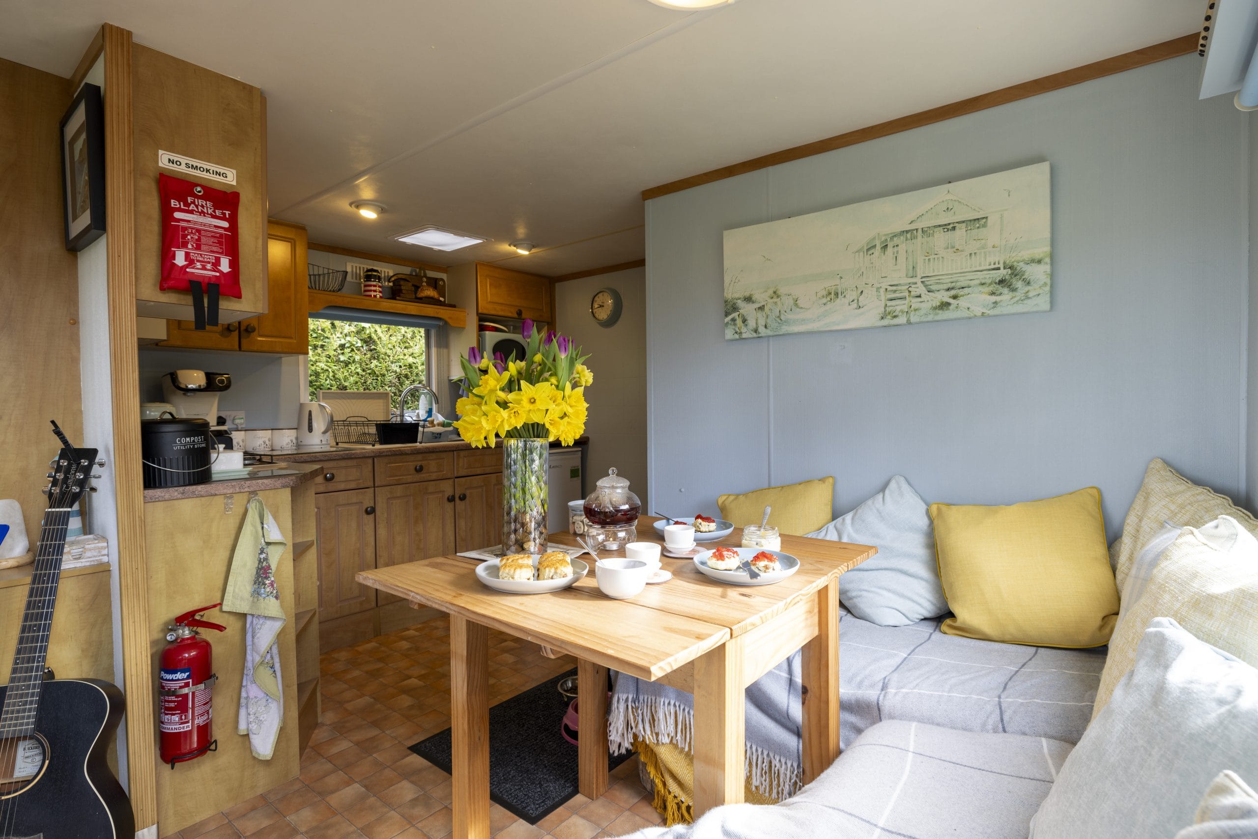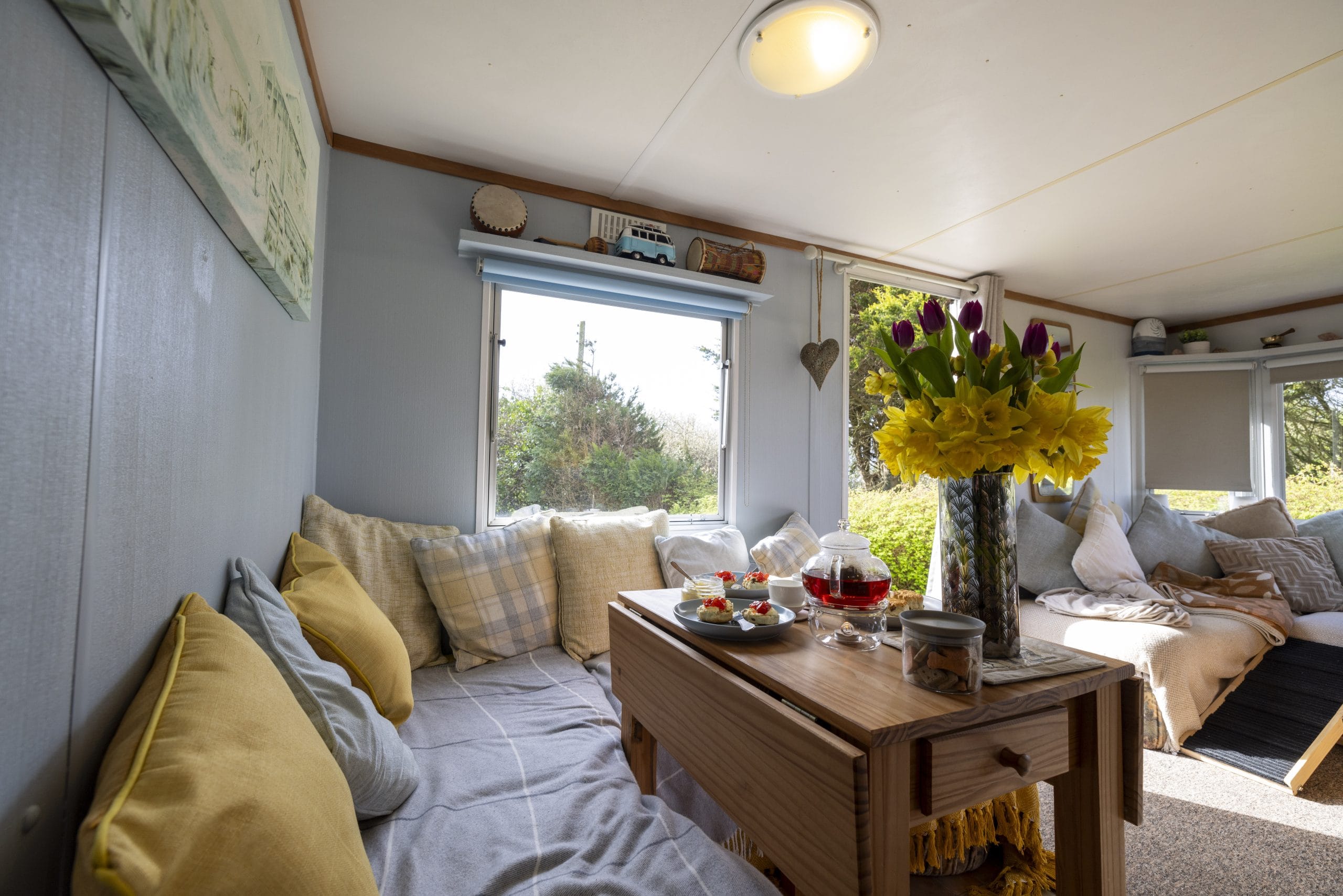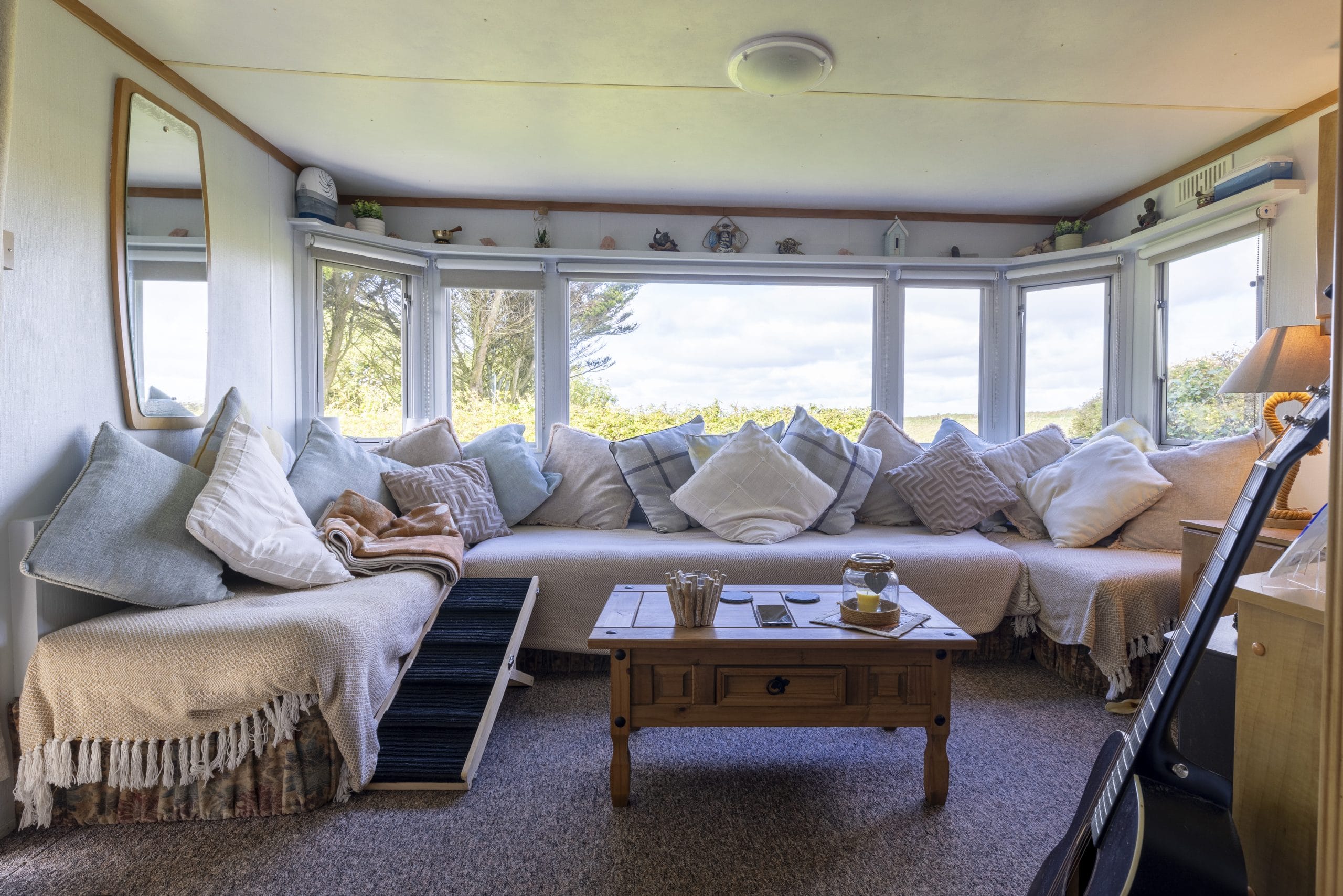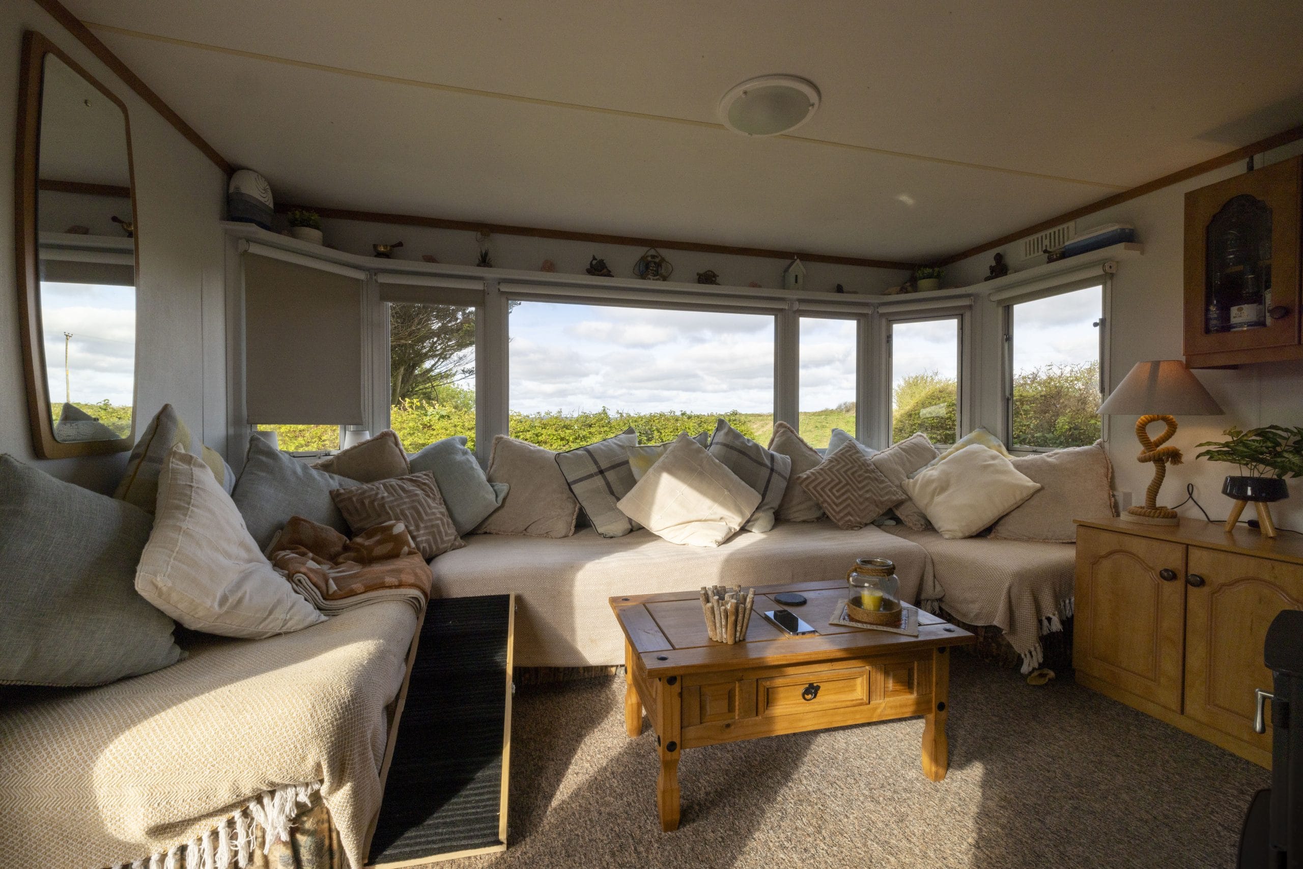 Chyvounder is all on one level (standard caravan height). There are a few steps up to the entrance. Once inside, the layout is open-plan and easy to navigate. If you have specific mobility issues, please contact Gail to discuss suitability. 📞