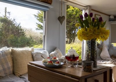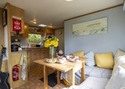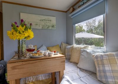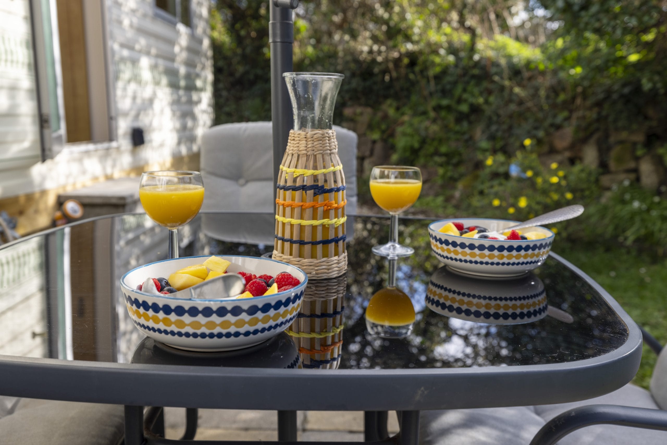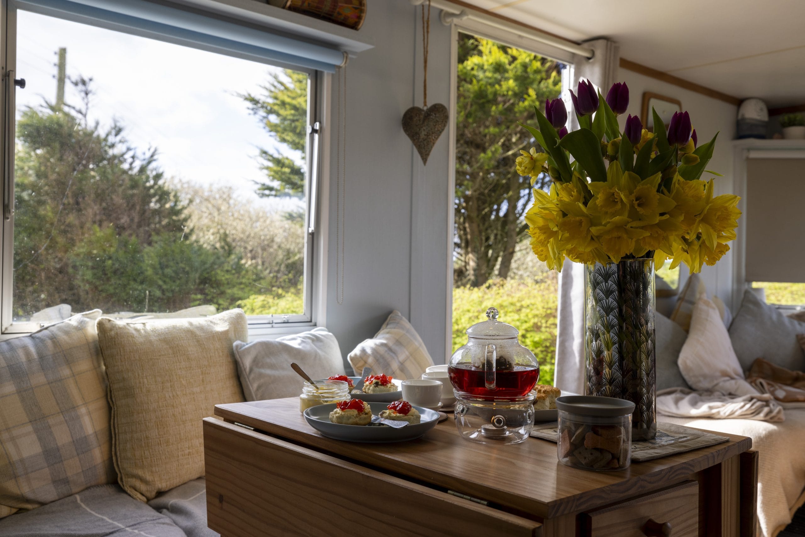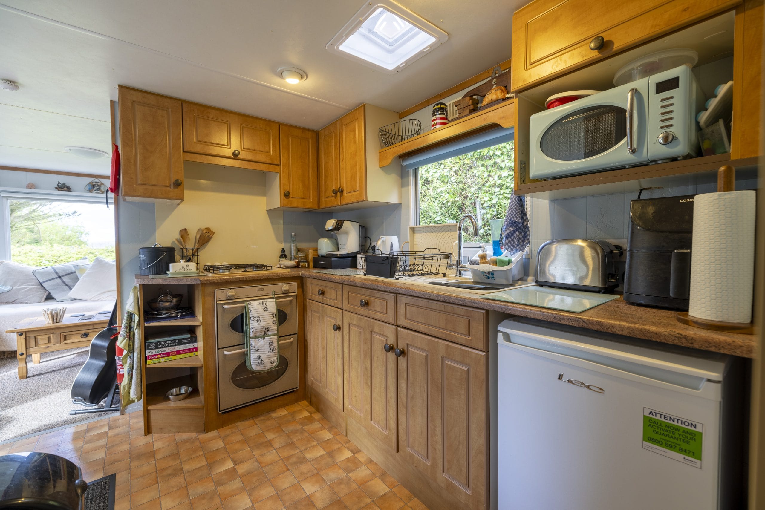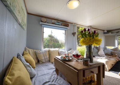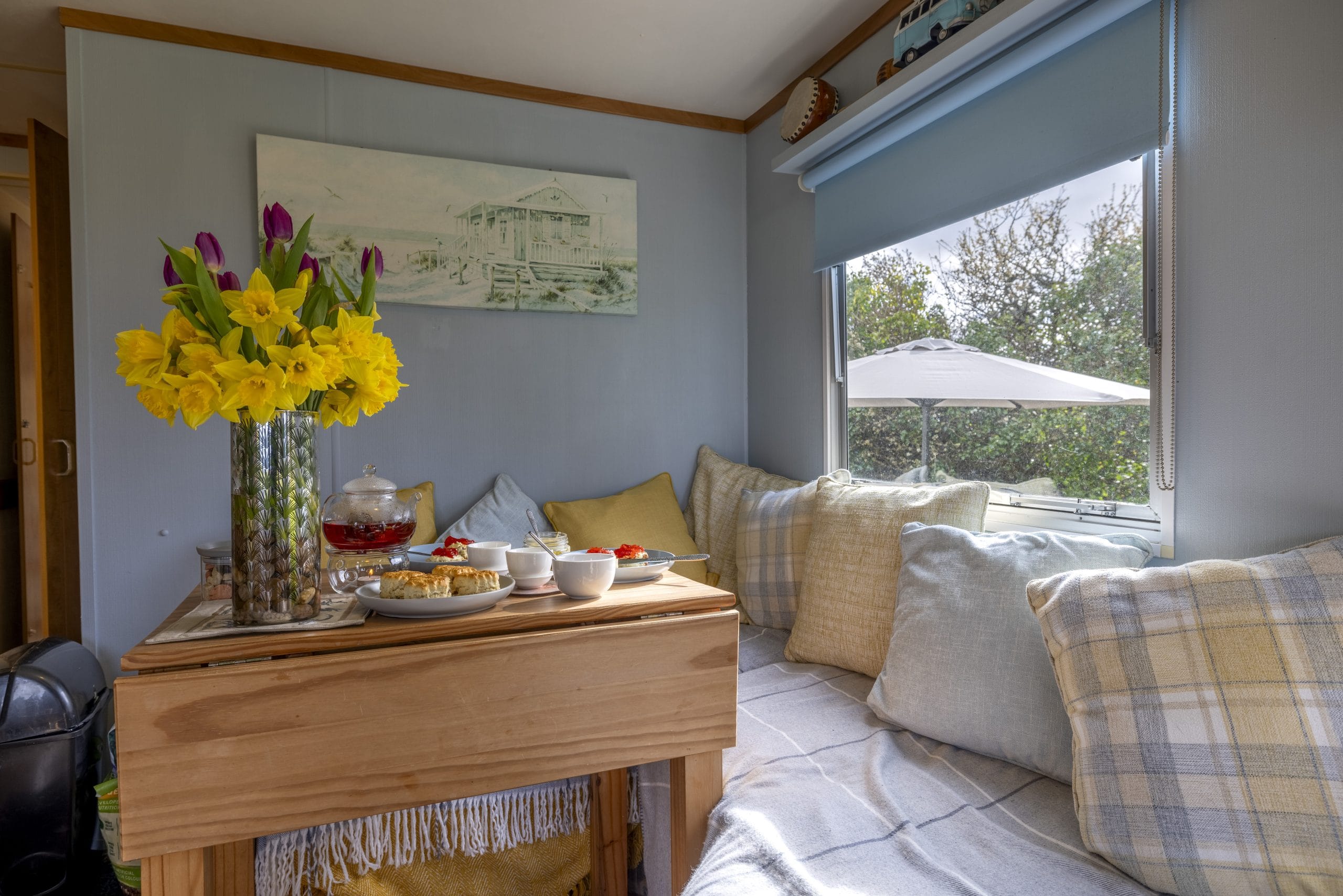 Chyvounder is all on one level (standard caravan height). There are a few steps up to the entrance. Once inside, the layout is open-plan and easy to navigate. If you have specific mobility issues, please contact Gail to discuss suitability. 📞