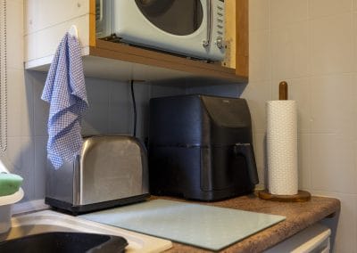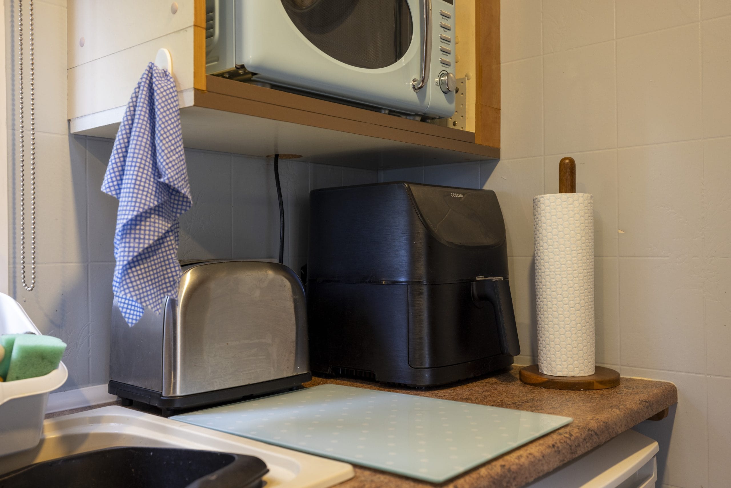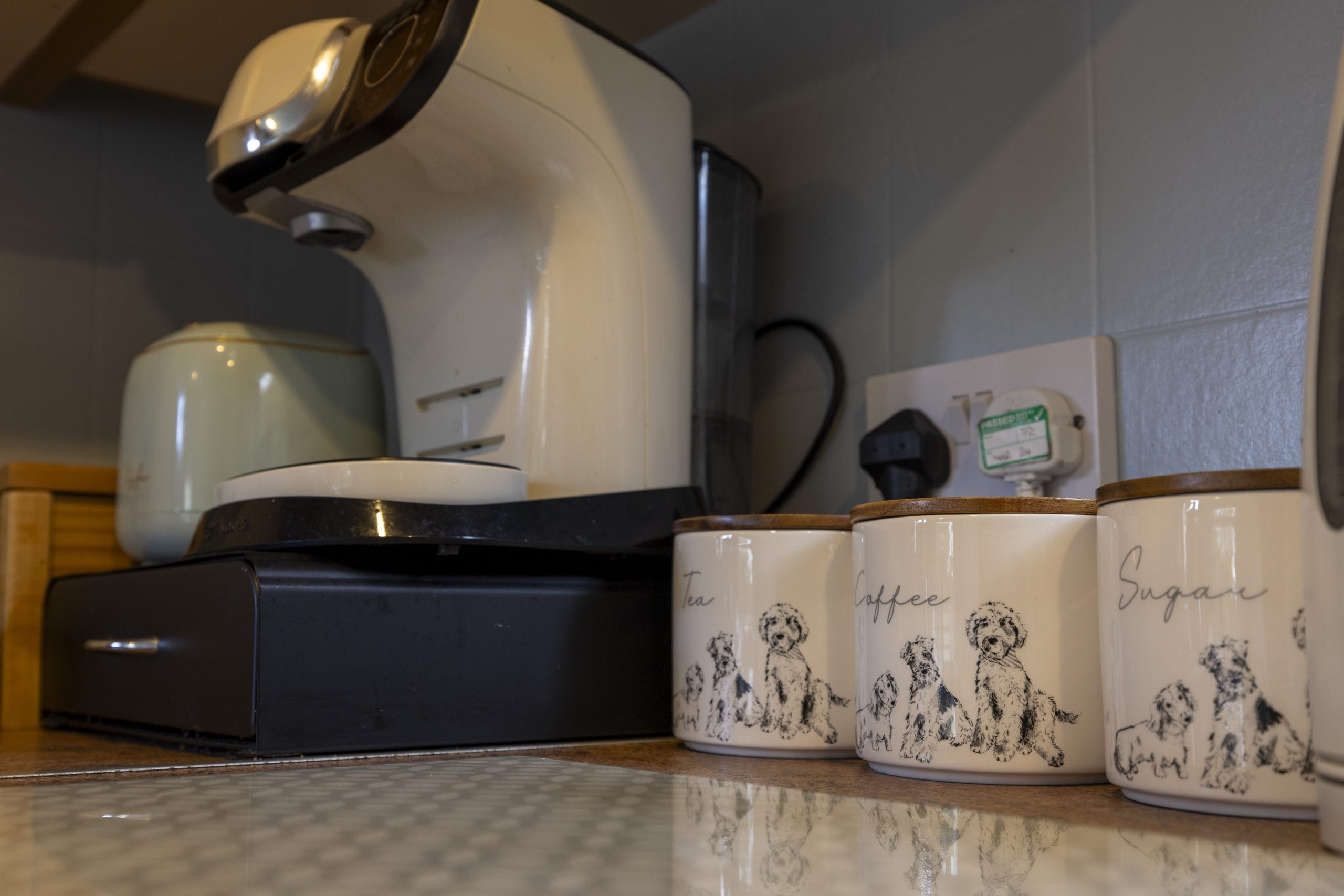 Living & Dining 🛋️🍽️ TThe open-plan living area is bright and airy, with an L-shaped dining nook perfect for planning your next coastal hike. The kitchen is fully equipped with an oven, microwave, and even an extra fridge for those essential holiday supplies. The comfortable L-shaped sofa also converts into a second bed when needed, allowing the property to sleep up to 4 guests. We are a "dogs-on-sofas" brand, so the pack is welcome to join you—just pop a Pack Holidays throw down first! 🐶🛋️