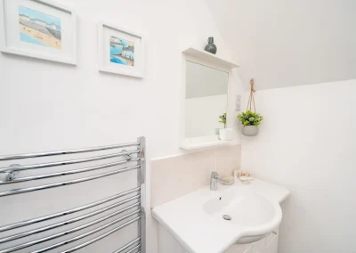 Upstairs Comforts The family bathroom is modern and features a powerful shower over the bath—perfect for washing off the salt air.
