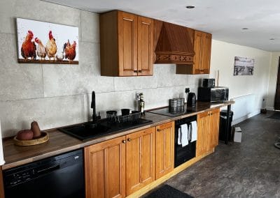 The Living Space ๐๏ธ Pompian Lodge is a massive 1800ftยฒ of open-plan comfort. The kitchen is well-equipped with an air fryer, dishwasher, and plenty of prep space. The lounge area features a full-sized pool table and a large Smart TV. Itโs the perfect spot to relax while the dogs sprawl out on the tiled floors (don't worry, we have plenty of throws for the sofas!).ย The sofa turns into a sofa bed if you have more than two guests!