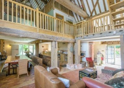 - Mezzanine Bedrooms 4 & 5: Tucked into the roof space with original beams and spectacular views. These are accessed via curtains from the balcony for a truly unique "barn sleepover" feel.