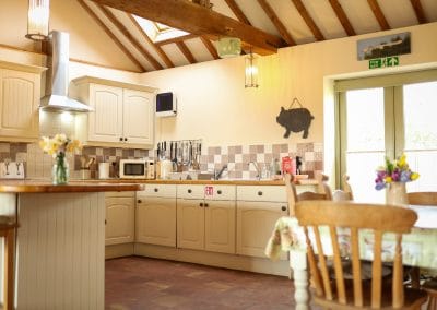 The Heart of the Barn: Kitchen & Dining This is where everyone gathers. The open-plan kitchen is massive and full of character, with original beams and a gorgeous breakfast bar. Itâs fully kitted out for the "Great Pack Bake Off" with an oven, dishwasher, and even a washing machine. The dining table is perfectly placed for long, social meals while the dogs snooze on the underfloor heating (which stays at a lovely, even temperature all day).